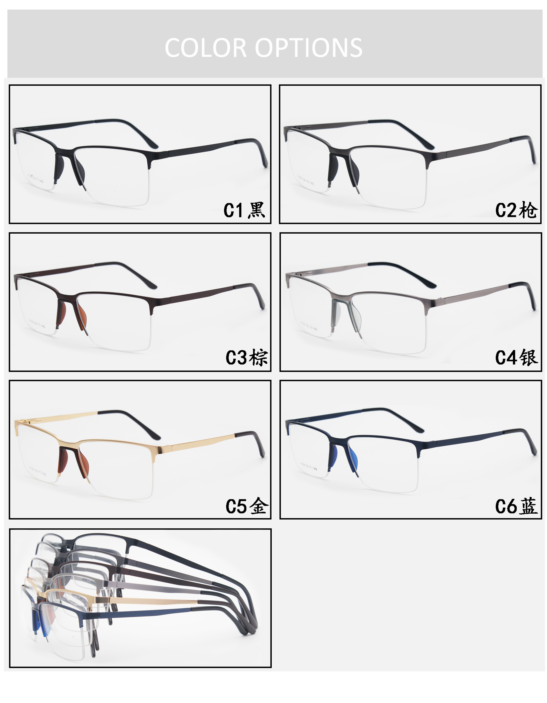 2021 Wholesale Rectangle Eyeglasses Frames Blue Light Filter Computer Women Men Metal Glasses