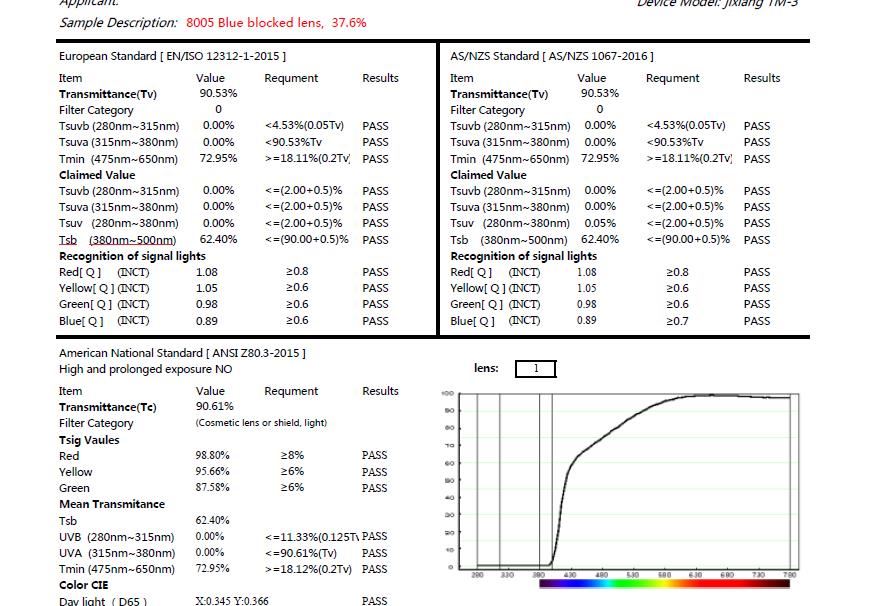 You can see from the lens blocked the blue ray, its card not change blue, But if not the lens blocked the card, the card changes dark blue. As you know the blue ray will make your eyes injured if kids use a computer, mobile phones, TV for a long time.